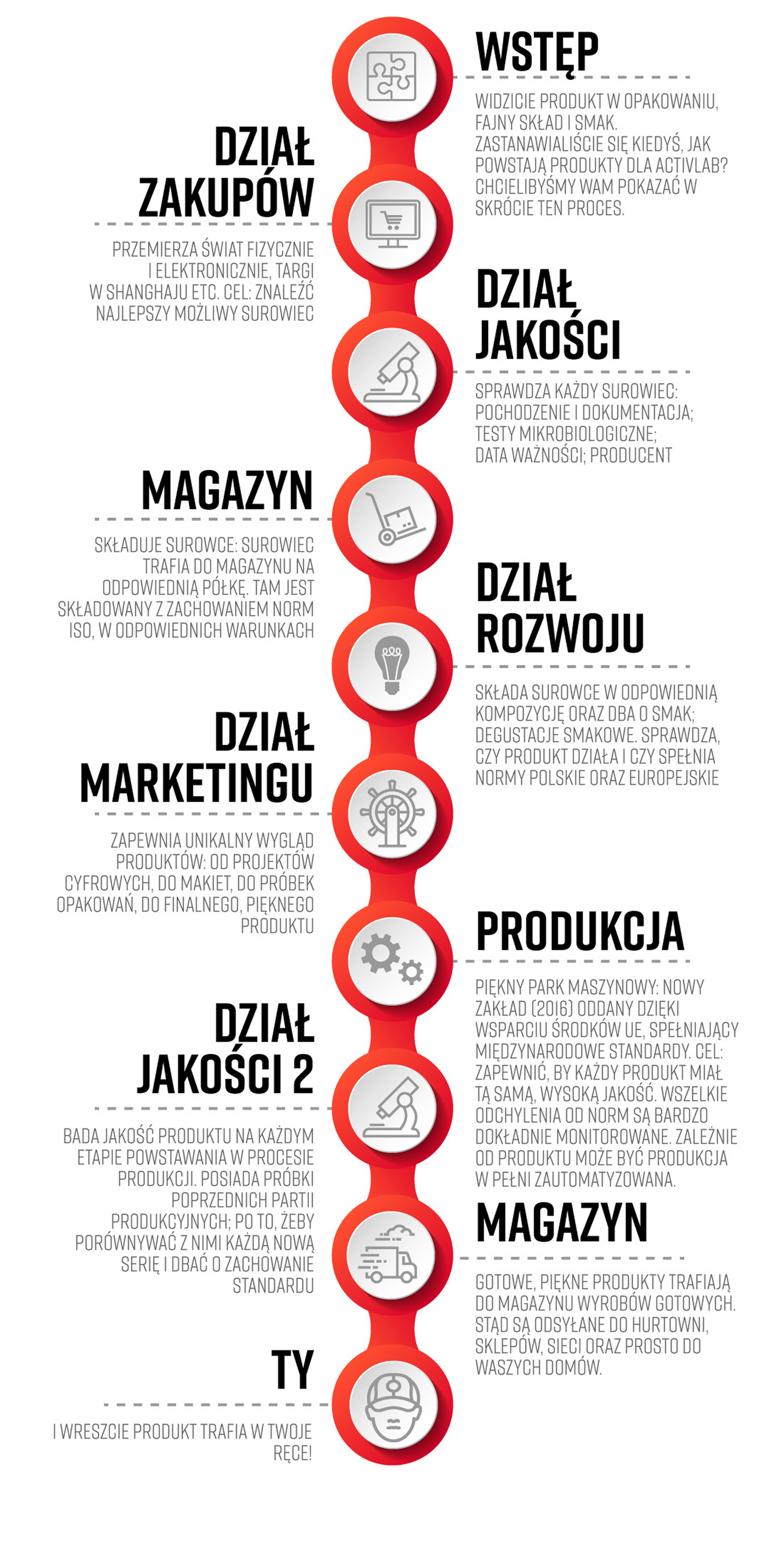 Our production and laboratories are a modern research and development center, as well as an intelligent logistics center, which guarantees the possibility of producing supplements at the highest level. These years of development have led to Activlab, with the great commitment of all employees, becoming one of the largest producers in the dietary supplement market today.